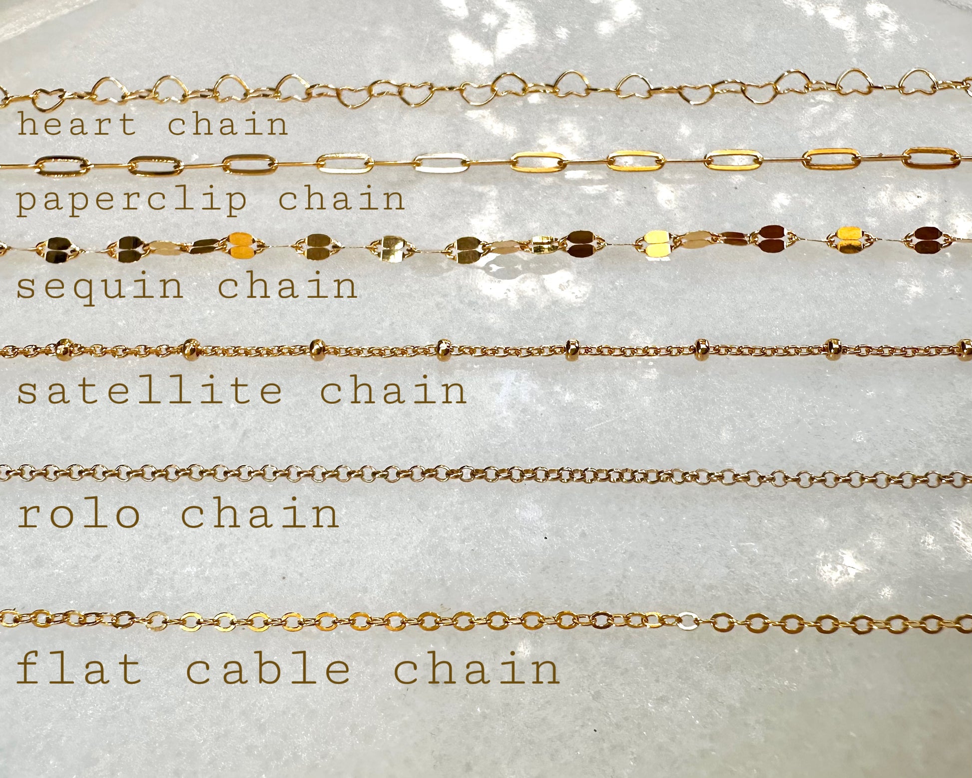 Upon arrival, you can choose between a wide selection of chains in 14k gold fill or sterling silver as well as additional charms for an added cost. Refer to the pictures and check the price guide below to find the price of each chain for your permanent bracelet or anklet.