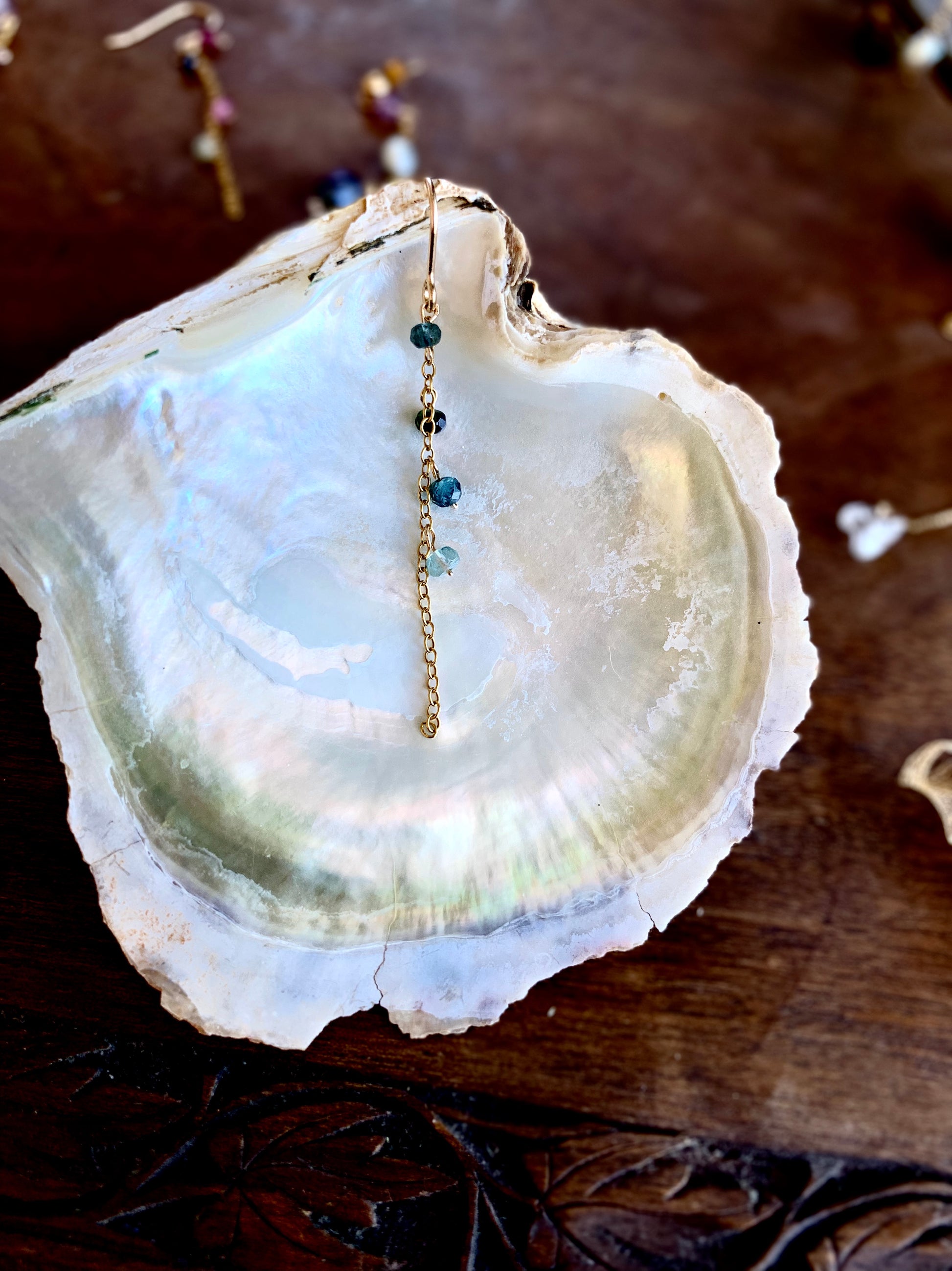 14ct gold filled drop earrings with shepherd hooks and natural faceted tourmaline rondells. Also available in sterling silver.